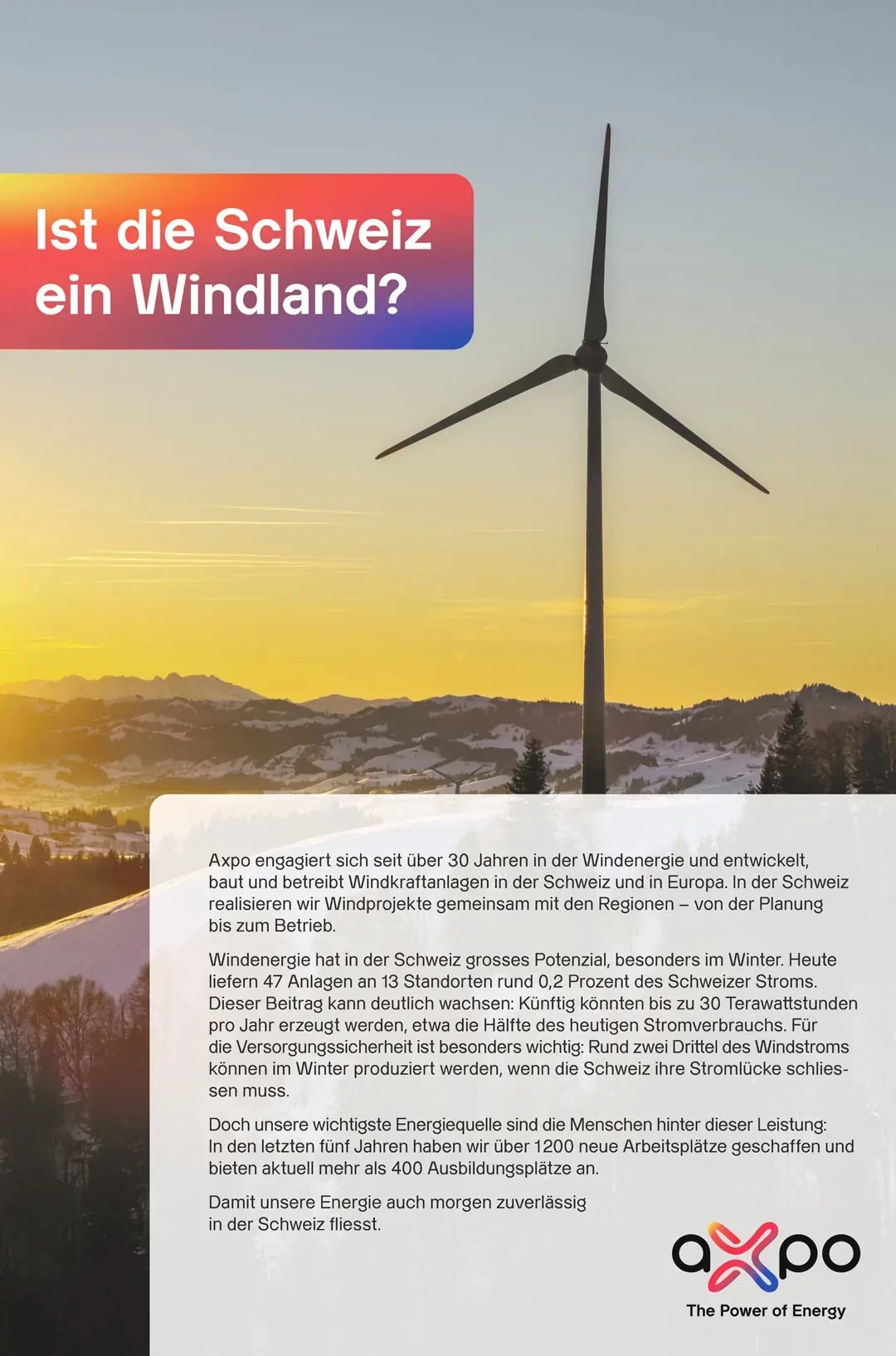 Die gezeigte Axpo-Grafik arbeitet mit monatlichen Prozentanteilen statt mit realen Strommengen und vermittelt dadurch den irreführenden Eindruck, Windenergie könne fehlenden Wasser- und Solarstrom im Winter ersetzen.