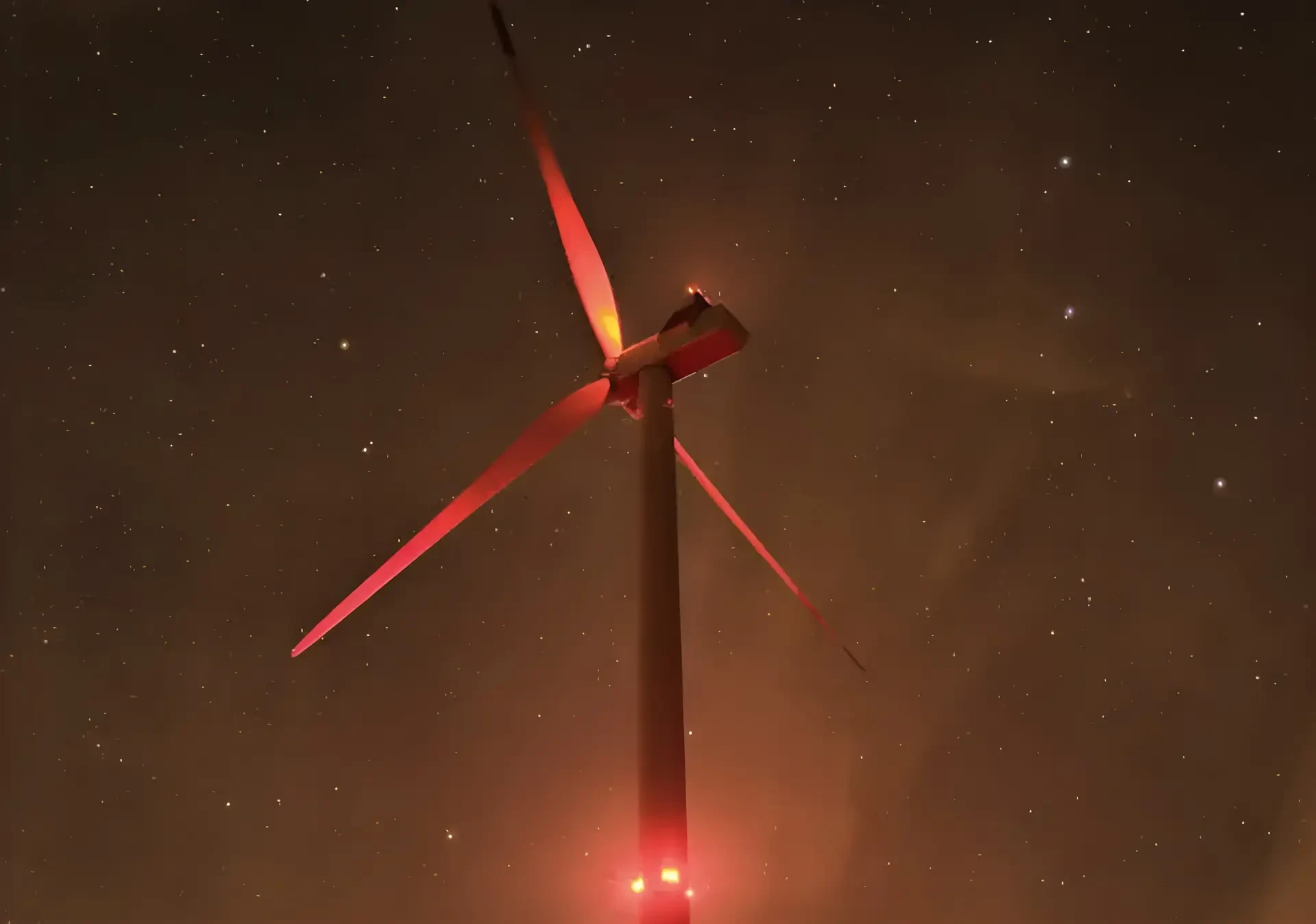 Die rot-weissen Bemalungen sind bei diesen Dimensionen sicher zusätzlich störend. Schlimmer ist die Befeuerung, welche bei Nebel, in der Dämmerung und in der Nacht aktiviert werden muss. Üblicherweise werden Lichter vorgeschrieben, welche bei allen vier Anlagen synchron, etwa im 2 Sekundentakt blinken und auf 5 km sichtbar sein müssen. Die Licht-Reflexionen an den Rotoren sorgen in der näheren Umgebung für eine sehr unangenehme «Light show».